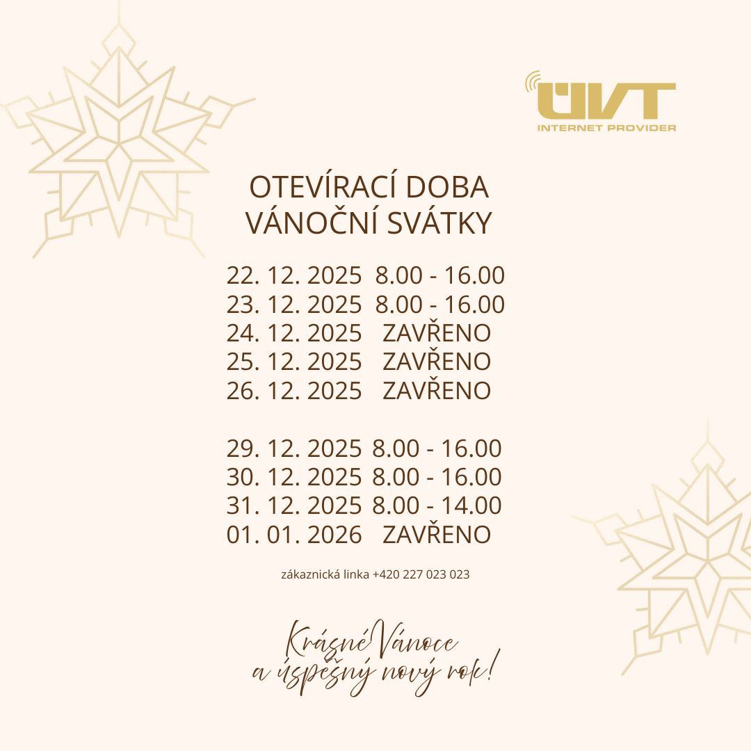 Kontakt pro ostatní operátory v rámci Institutu změny poskytovatele služby přístupu k internetu v režimu §34a Zákona o elektronických komunikacích je: internet@uvtnet.cz Pověřenec pro ochranu osobních údajů: Jakub Rejzek: dpo@uvtnet.cz